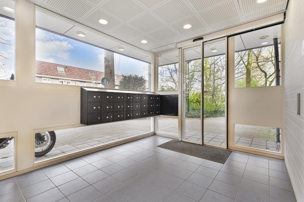 Vanuit de centrale hal van gebouw E (uitgerust met bellentableau en videofoon installatie) is dit appartement via lift en trap bereikbaar. De berging (6m²) is eveneens via de begane grond te bereiken.