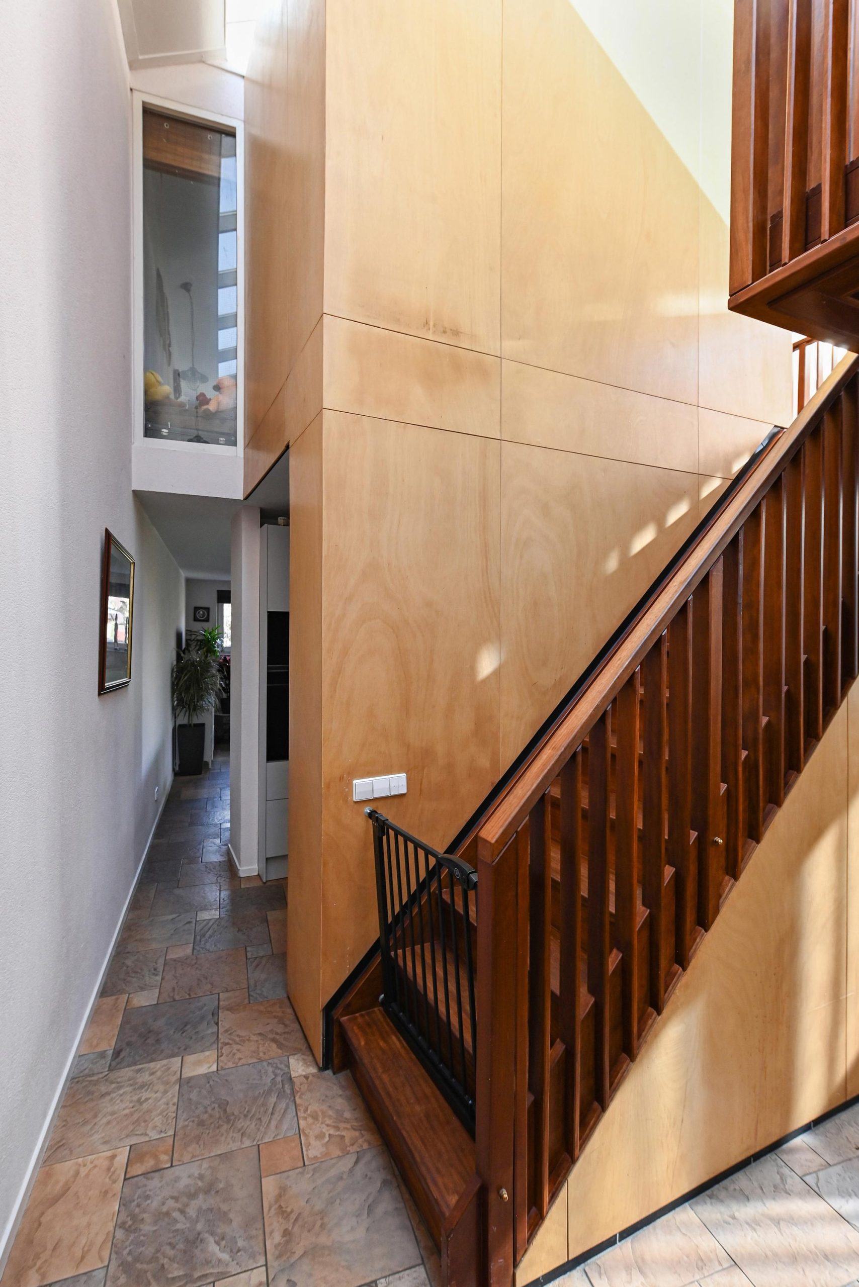 Deze in 2001 gebouwde woning onderscheidt zich door haar bijzondere architectuur, geïnspireerd op de Franse landhuisstijl. De combinatie van hoogte, licht en speelse zichtlijnen zorgt voor een unieke woonbeleving.