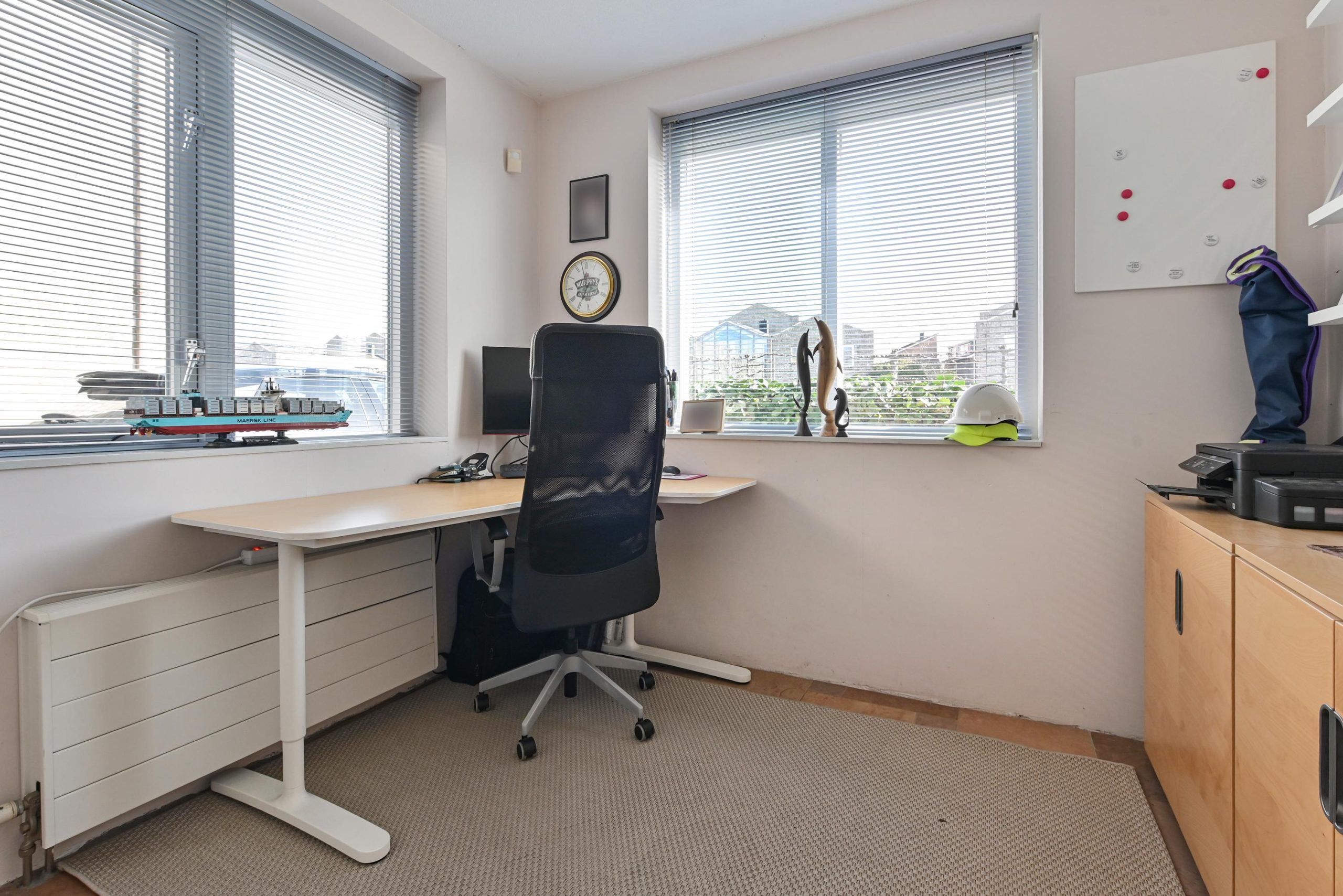 De indeling is ruim opgezet en praktisch ingericht, met onder andere een aparte slaap-/werkkamer op de begane grond, waardoor de woning uitstekend geschikt is voor thuiswerken of een praktijk aan huis.