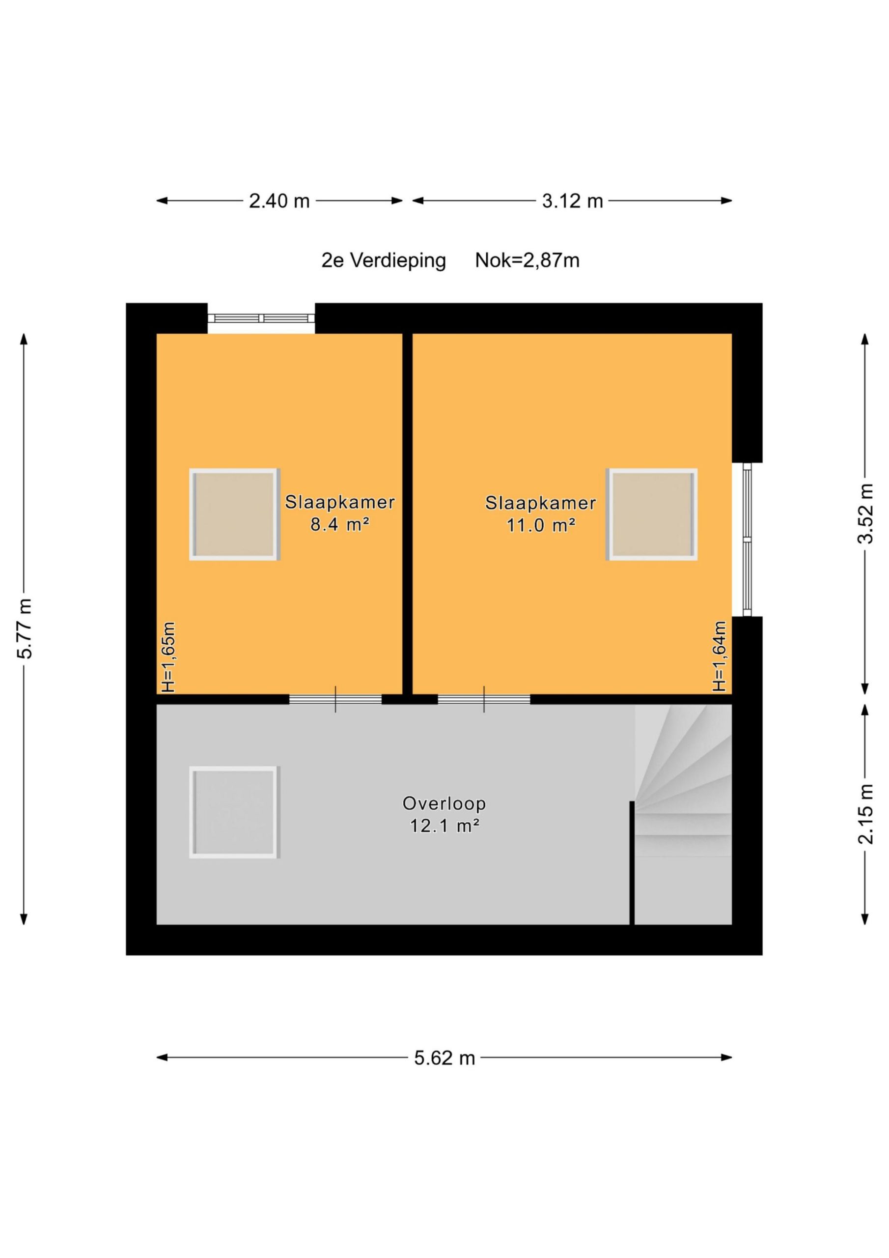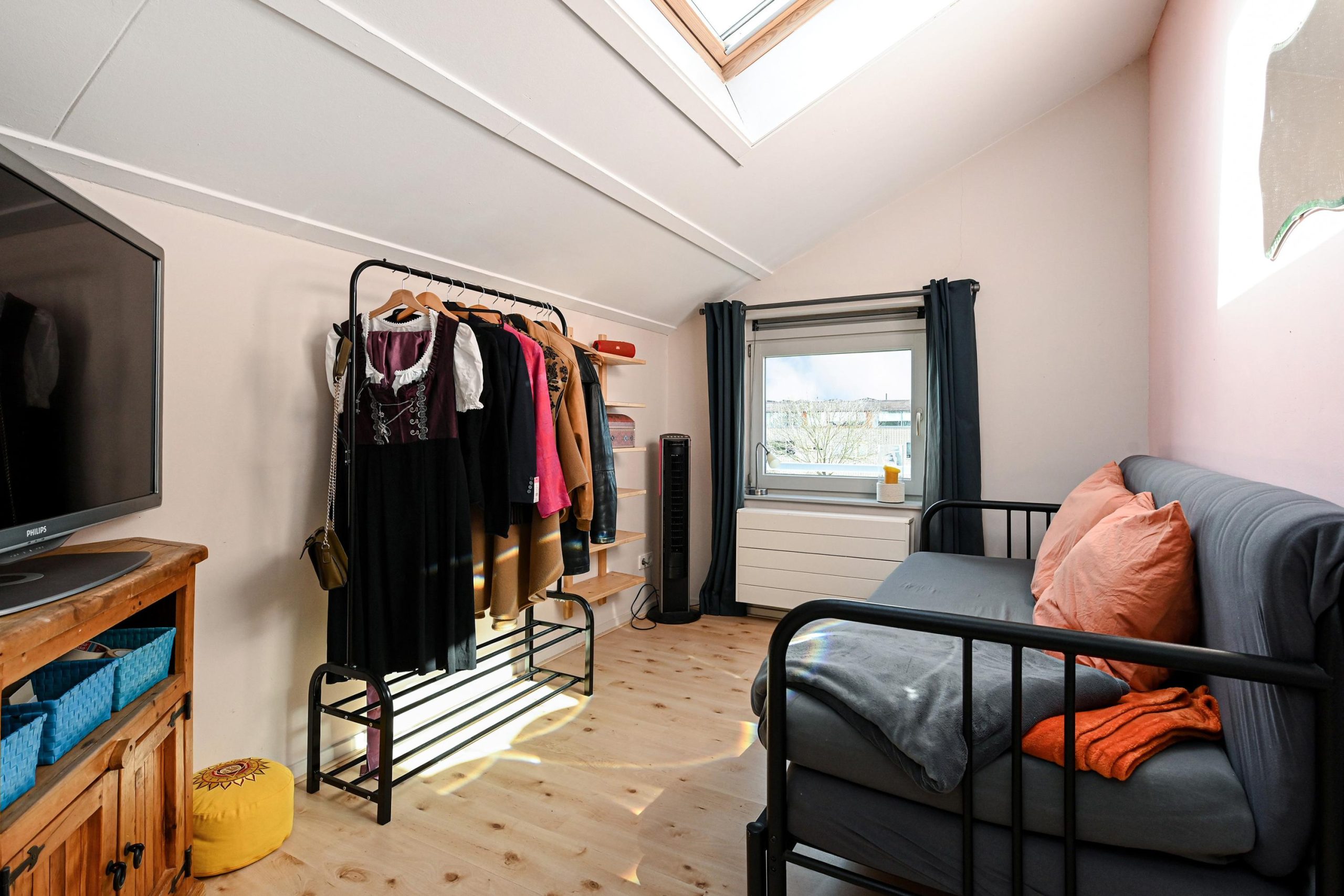 De tweede verdieping beschikt over een ruime overloop met toegang tot twee slaapkamers (respectievelijk 11 en 8.4 m2). Beide kamers hebben veel lichtinval door de dakramen en vrij uitzicht aan de achterzijde.