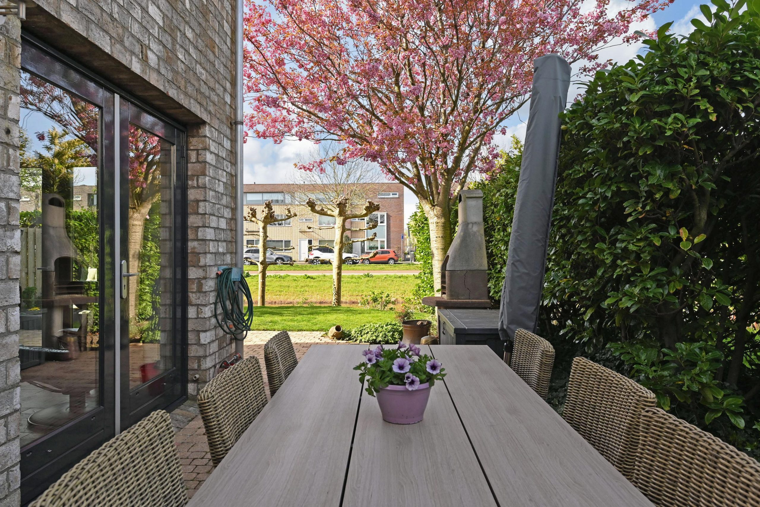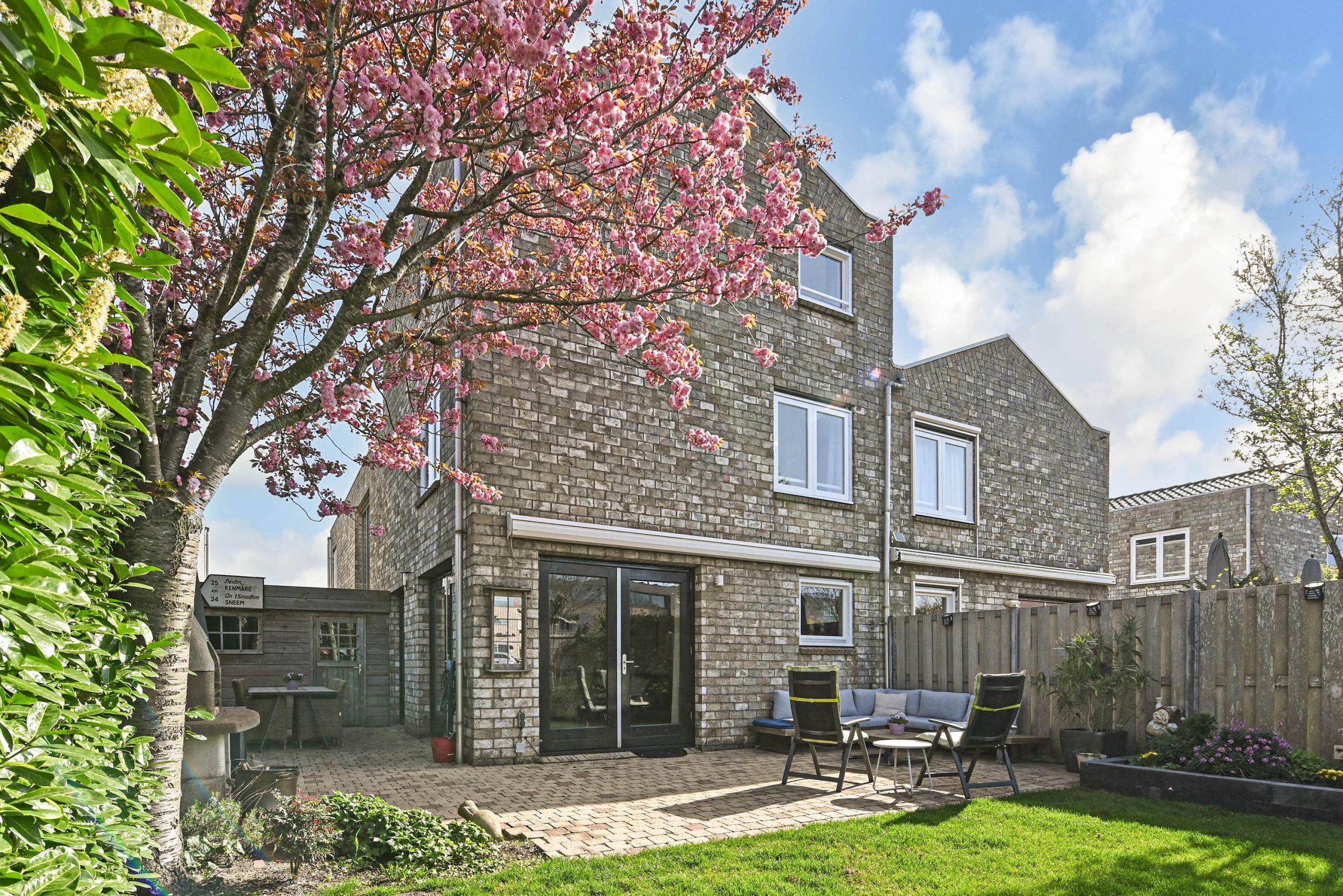 De tuin is voorzien van een vlonder, een tuinhuis en meerdere zitmogelijkheden, waardoor er op verschillende momenten van de dag optimaal van de buitenruimte kan worden genoten.