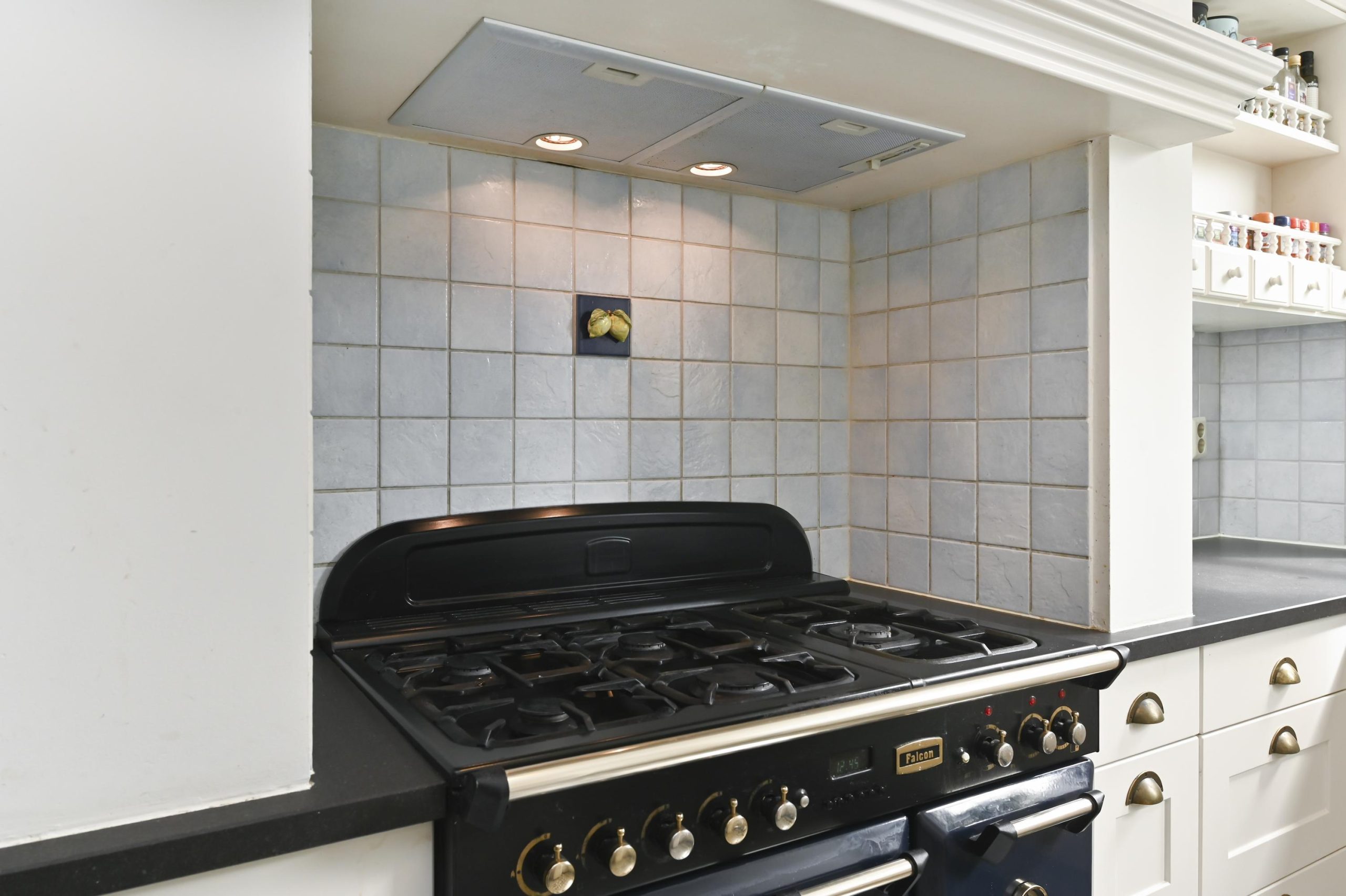 De ruime landelijke woonkeuken is uitgevoerd in een L-opstelling en afgewerkt met sfeervolle vloertegels. Hier is voldoende ruimte voor een grote eettafel, wat deze ruimte tot een echte leefkeuken maakt. De keuken is voorzien van diverse inbouwapparatuur, waaronder een vaatwasser, een ruim fornuis met vier pitten en wokbrander en drie ovens. De koelkast is eventueel ter overname. Daarnaast beschikt de keuken over een royale bergkast.