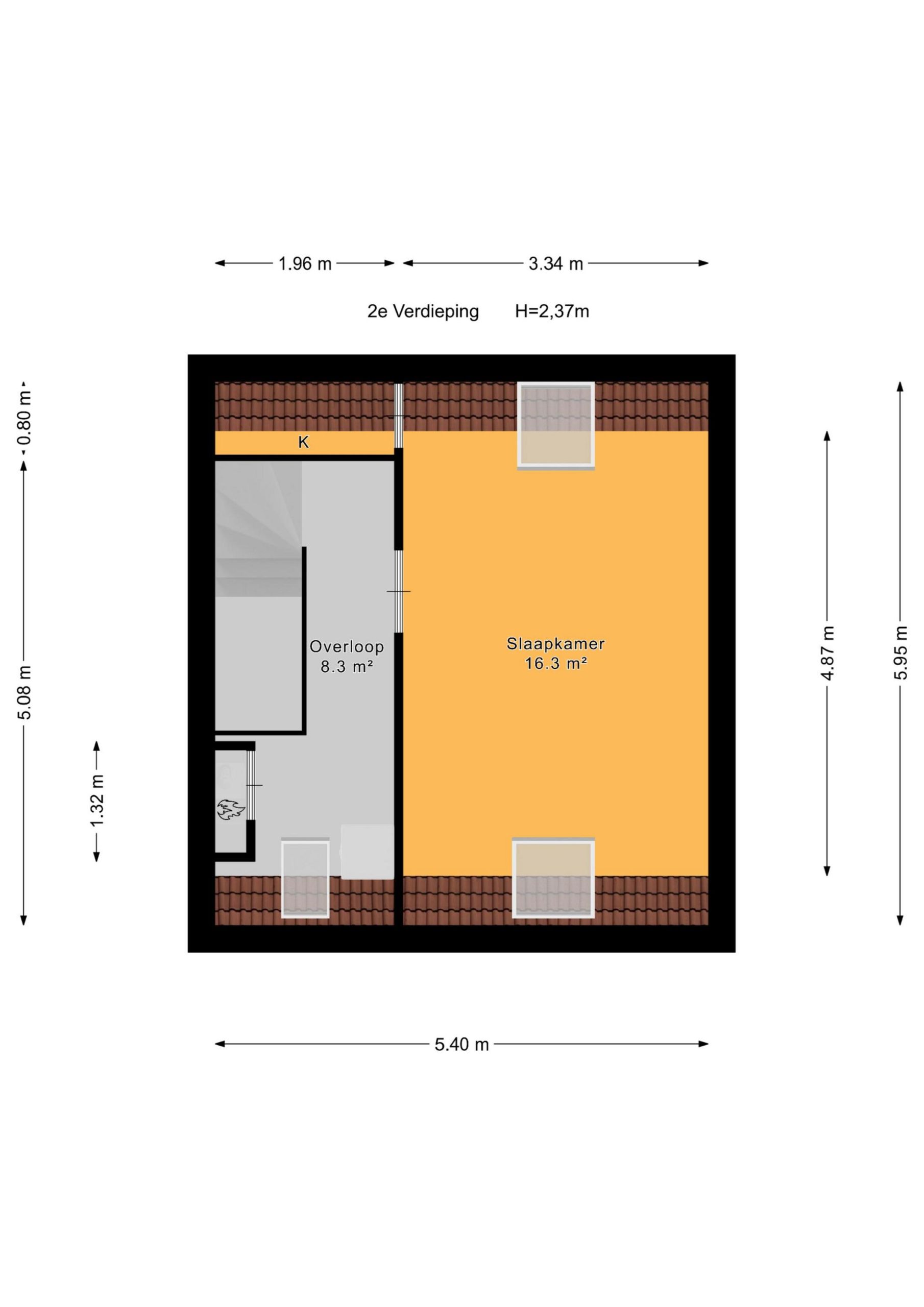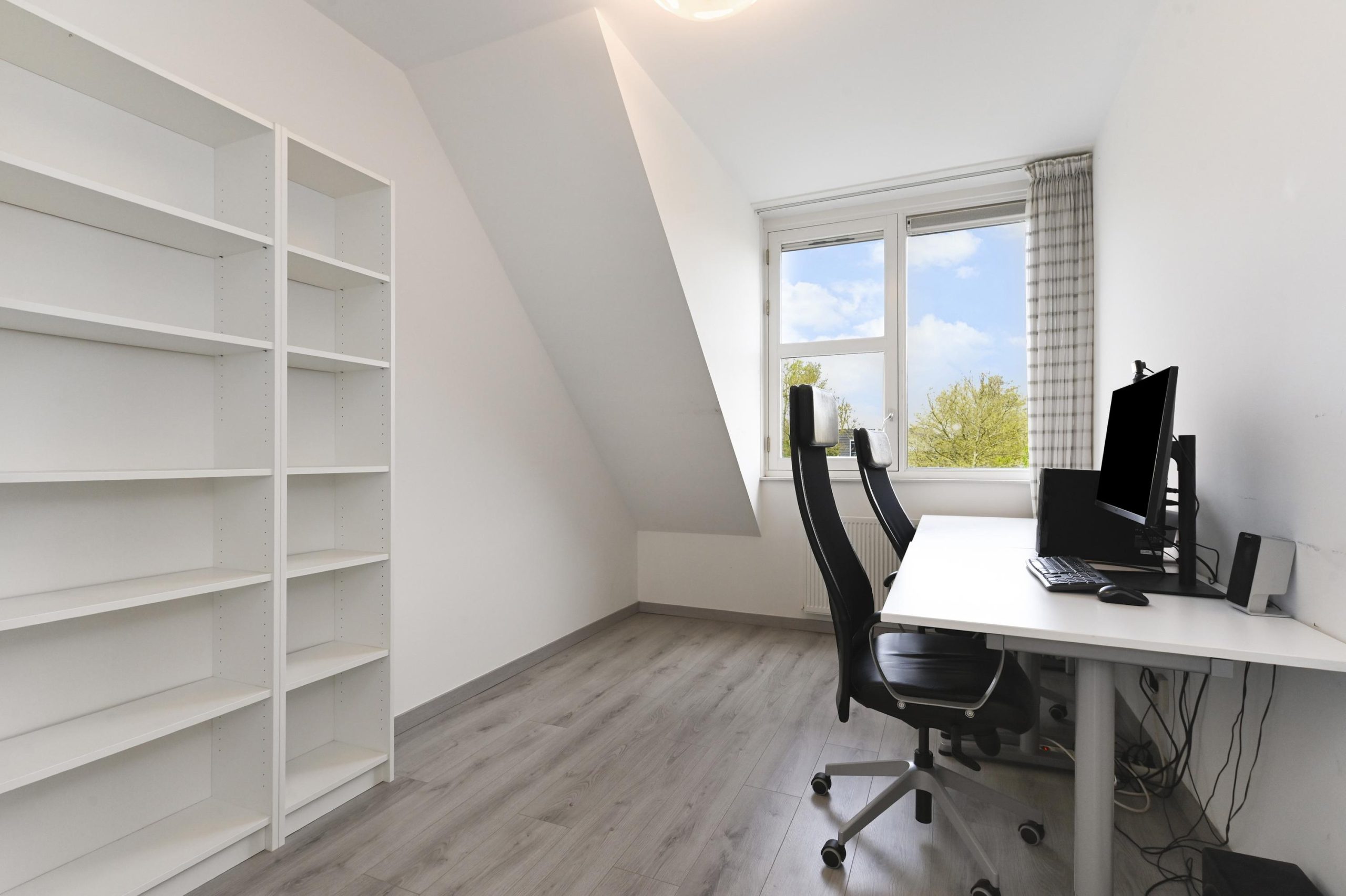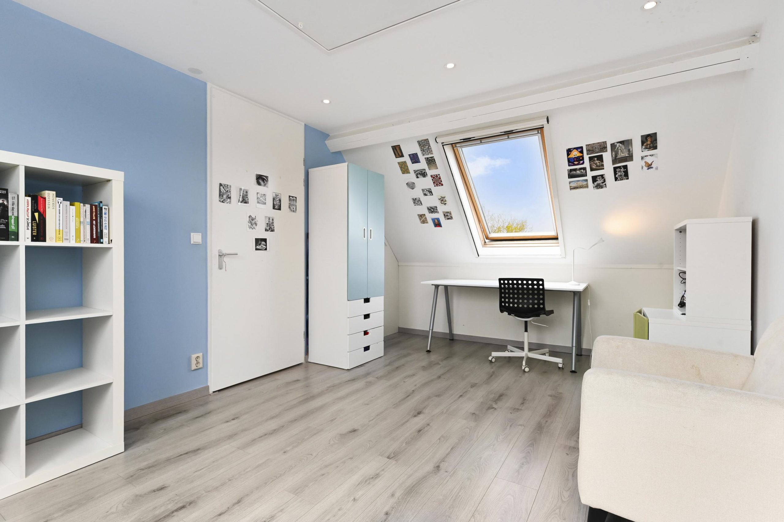 De vierde slaapkamer (ca. 4.85 x 3.35 m) is een ruime zolderkamer met Velux dakramen aan zowel de voor- als achterzijde, wat zorgt voor veel lichtinval. Tevens is er praktische bergruimte aanwezig achter de knieschotten.