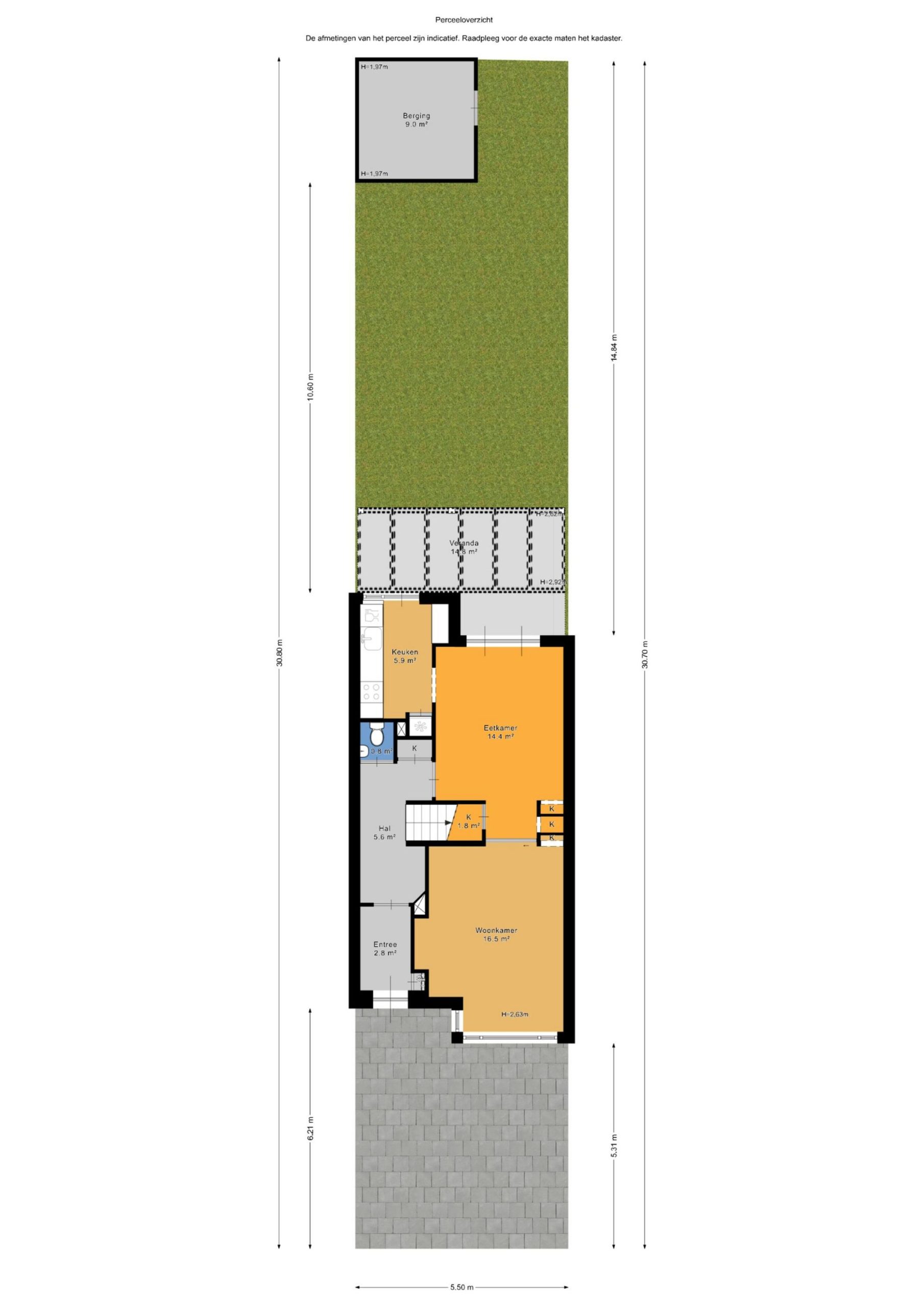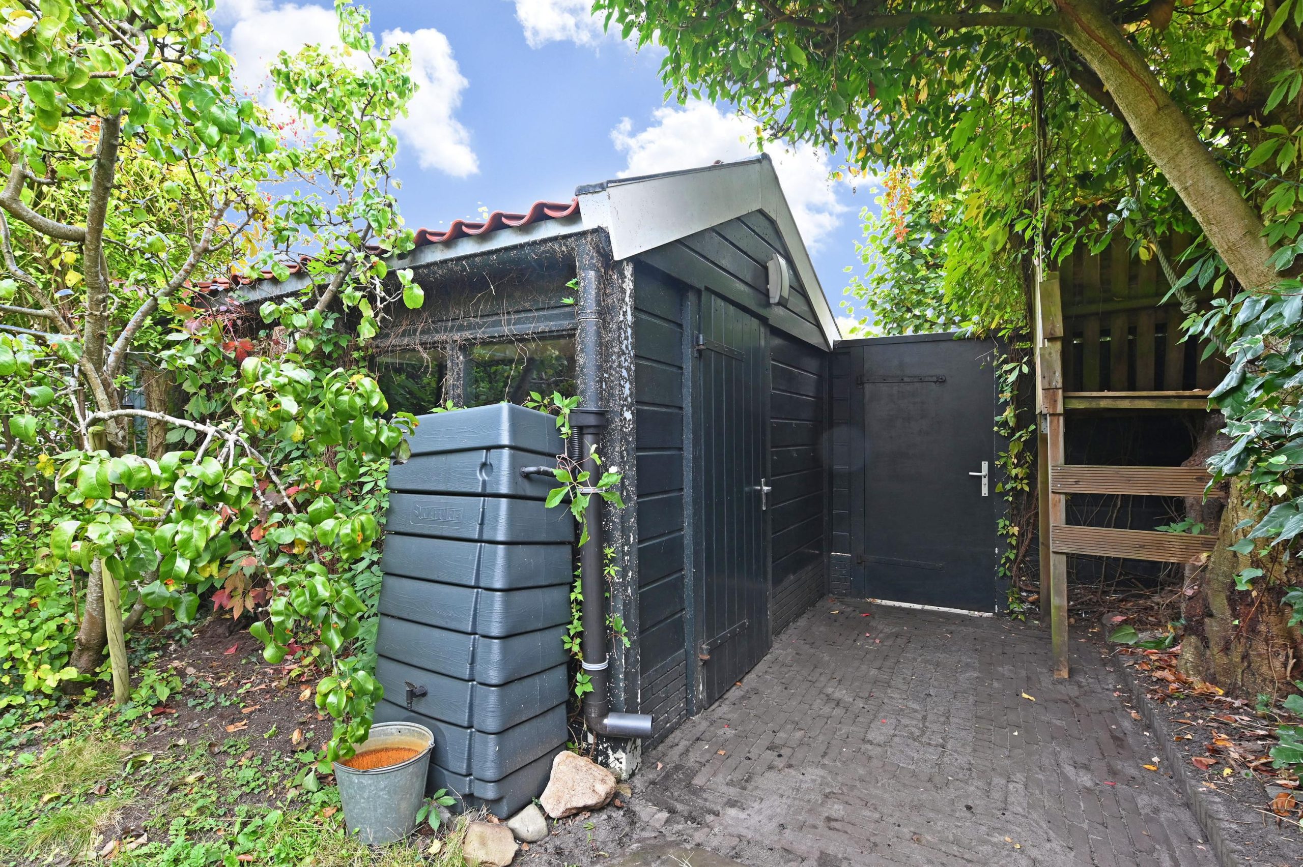 Voortuin, heerlijke achtertuin van ca. 14.84 x 5.50 m. met (fietsen)berging en achterom.