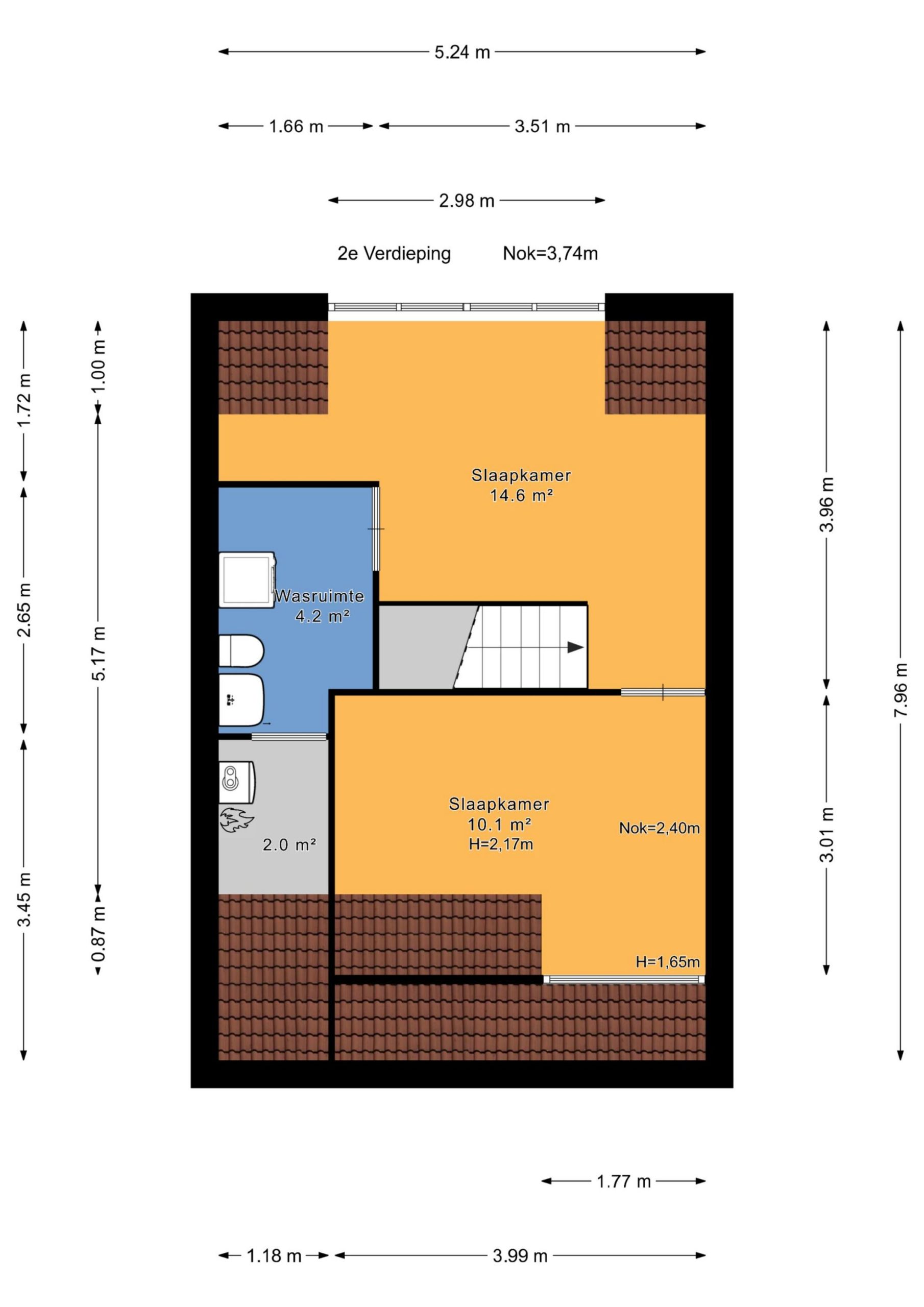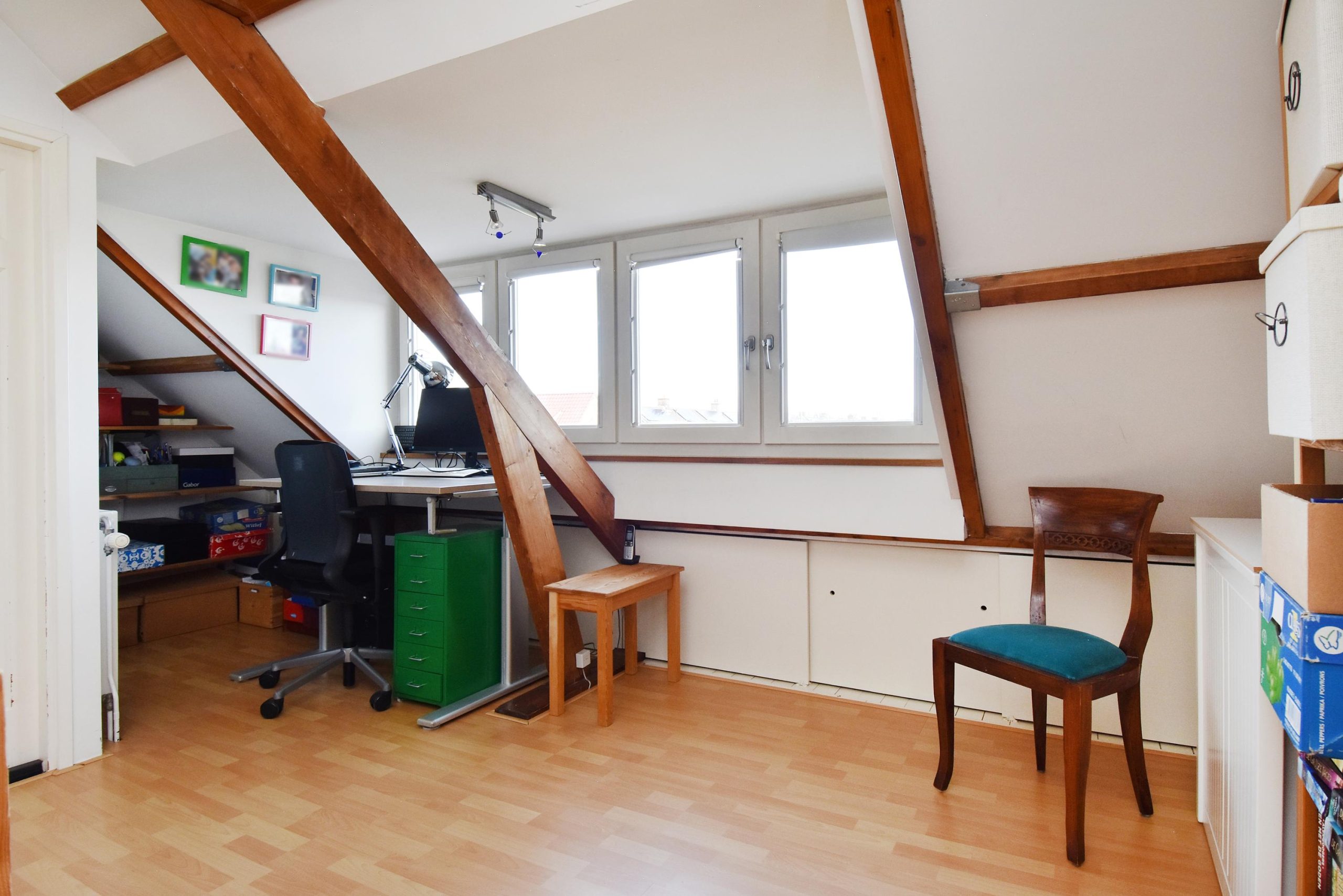 Grote overloop/werkkamer van ca. 15m2 met dakkapel waarbij de mogelijkheid bestaat hier nog een 4e slaapkamer te creëren, slaapkamer aan de voorzijde van ca. 10 m2 met eveneens dakkapel. Separate ruimte met cv-opstelplaats, wasmachine/droger opstelling, wastafel en derde toilet.