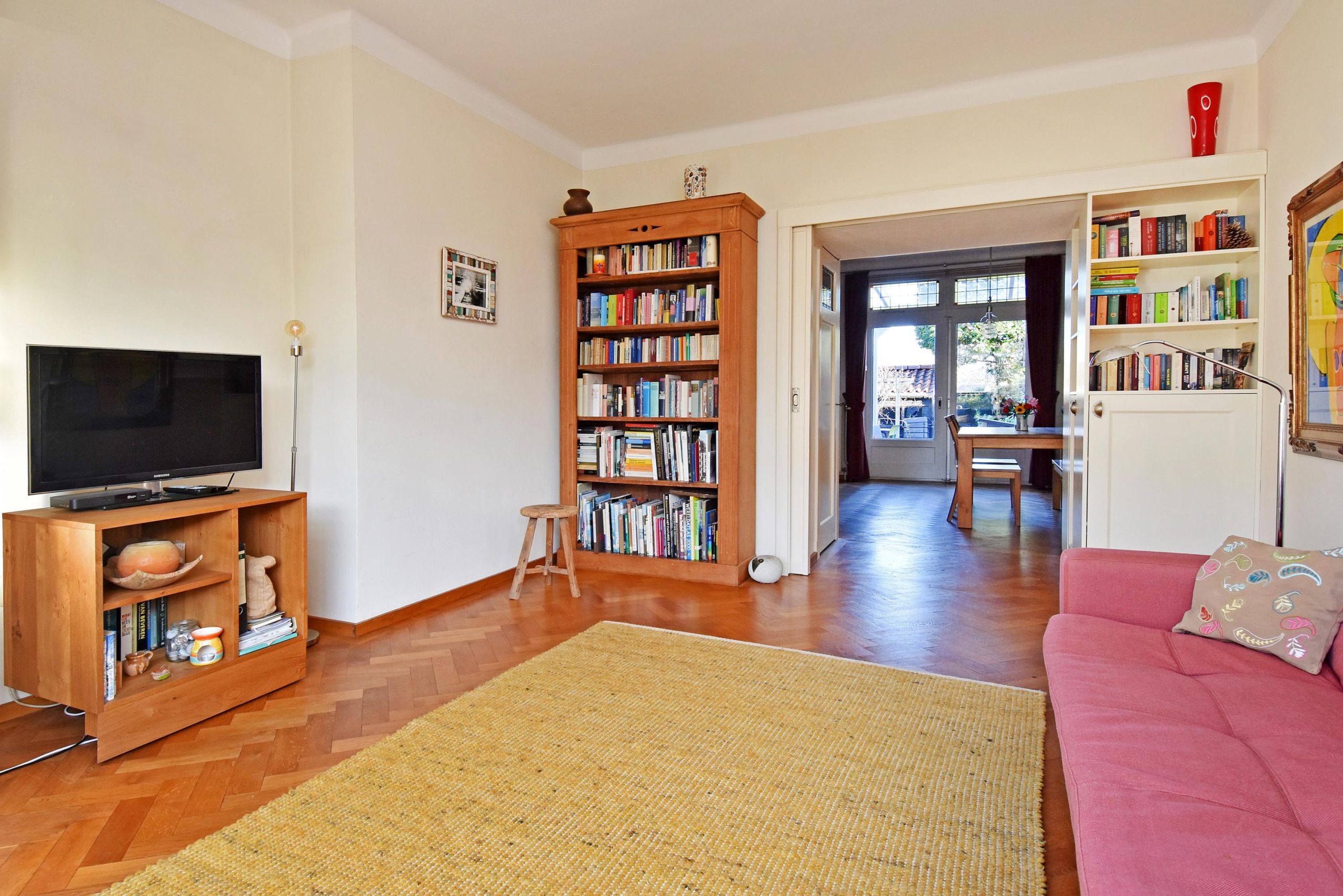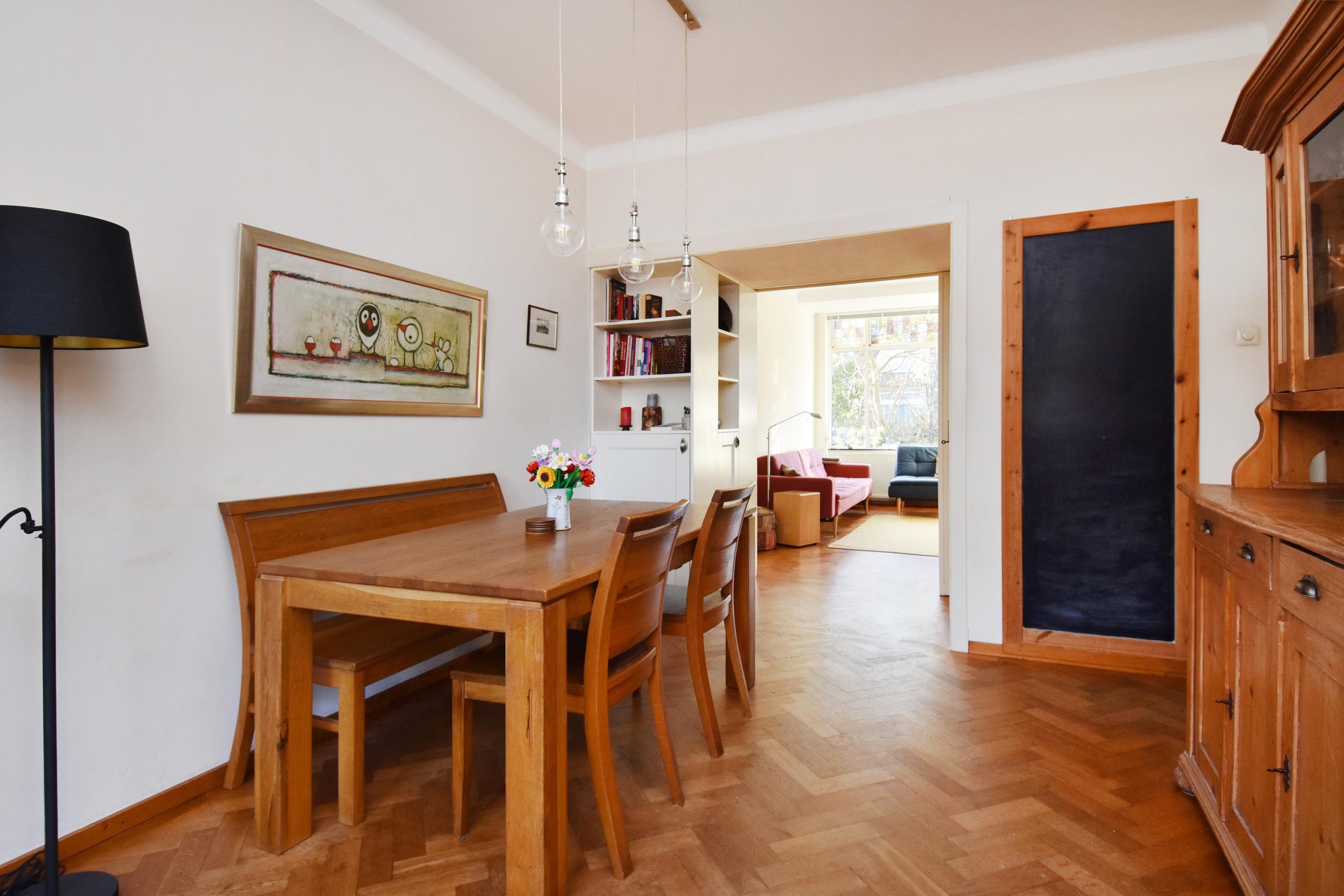 Woonkamer ensuite van ca. 31 m2 met eiken visgraatparketvloer, suite separatie en openslaande deuren naar de tuin.