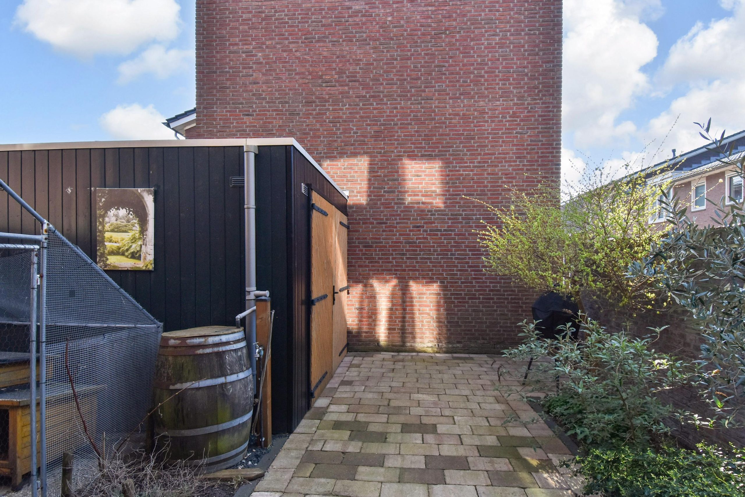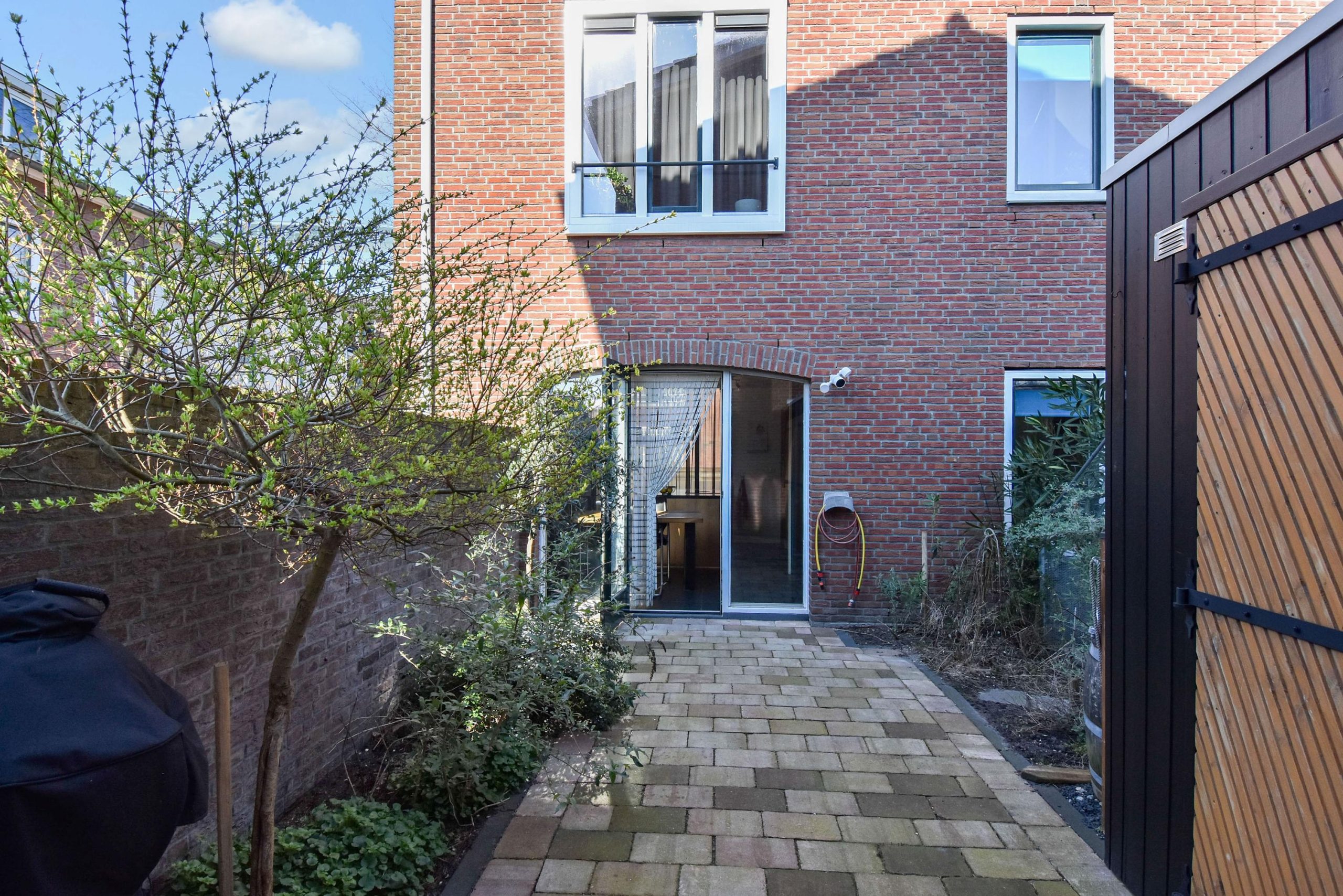 De achtertuin is onderhoudsvriendelijk aangelegd en biedt voldoende ruimte voor een zitgedeelte. Achterin de tuin bevindt zich een vrijstaande berging (ca. 8,5 m²), geschikt voor fietsen en opslag. Via de achterom is de tuin direct bereikbaar vanaf de straat, wat zorgt voor extra gebruiksgemak.