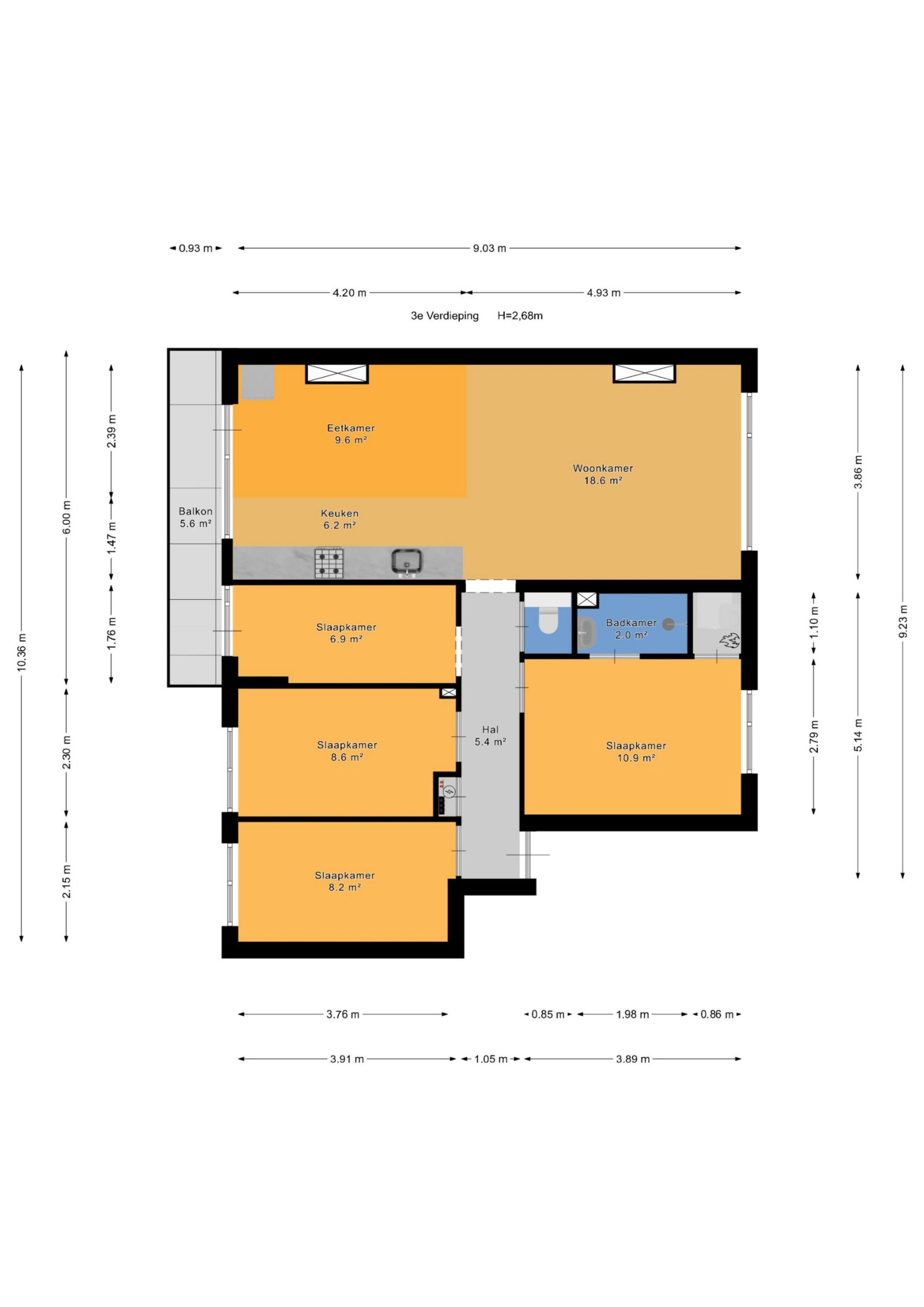 Via gesloten portiek met de trap naar de derde etage, entree woning, via hal toegang tot alle vertrekken.