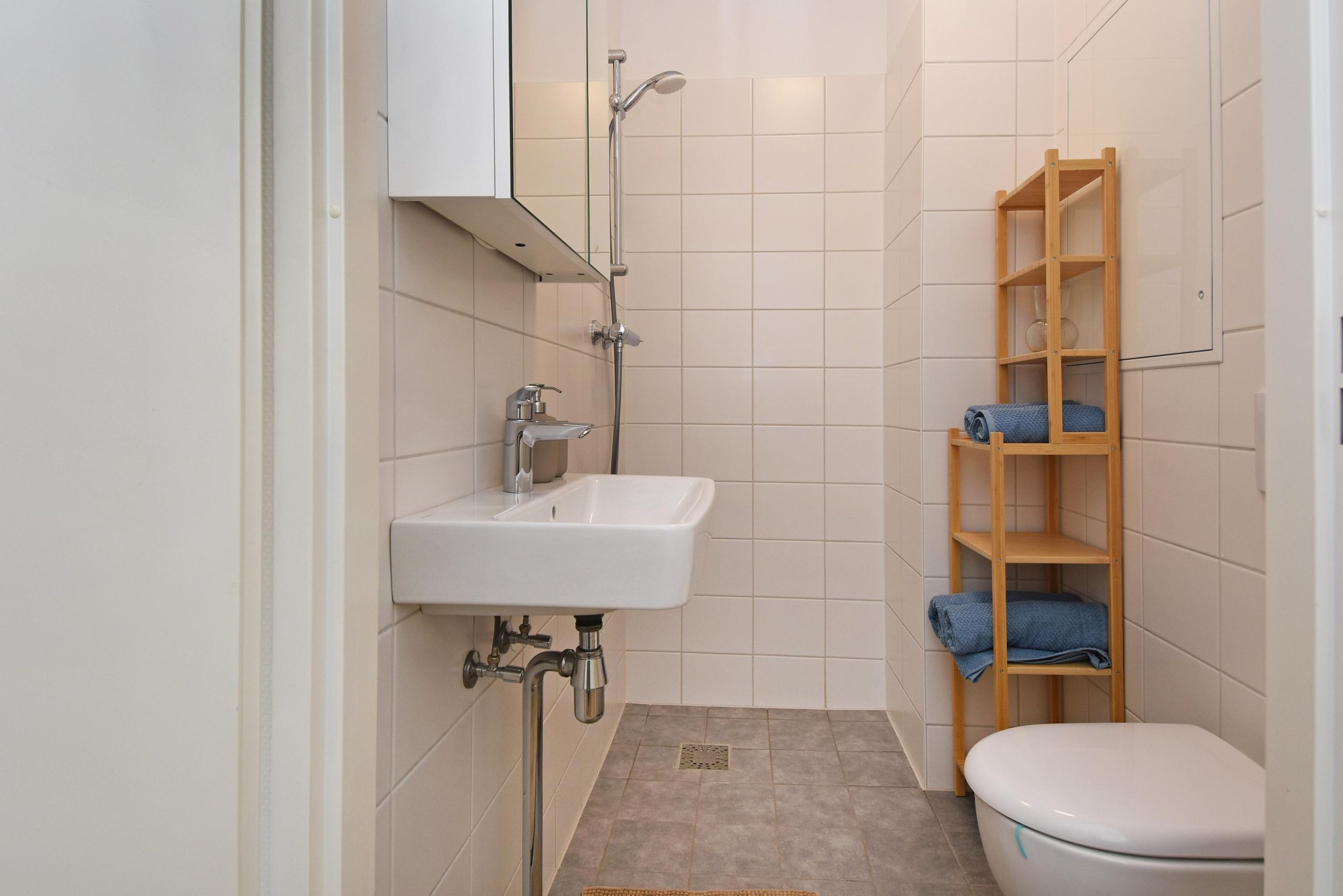 Entree appartement, voorzien van een moderne keuken met diverse inbouwapparatuur en badkamer met douche, toilet en hangende wastafel. Beide kamers zijn hetzelfde ingedeeld.
