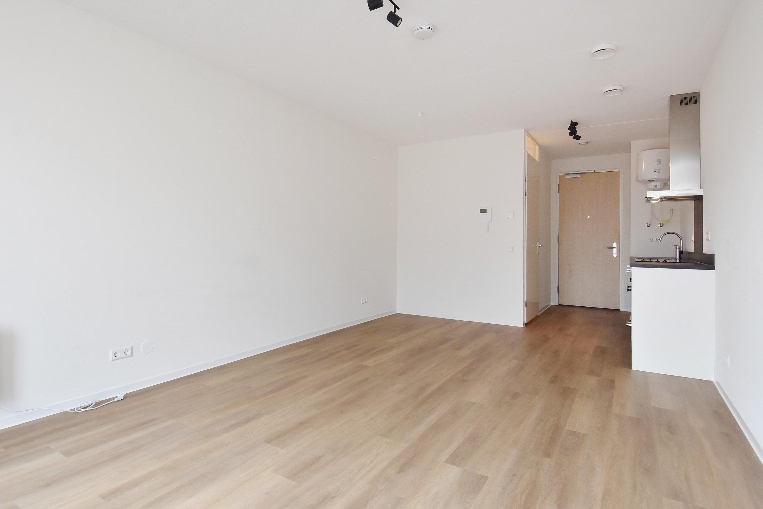 Entree appartement, aantrekkelijk en lichte studio van ca 29m². Inclusief moderne keuken met inbouwapparatuur. Moderne badkamer met douche, toilet en wastafel.