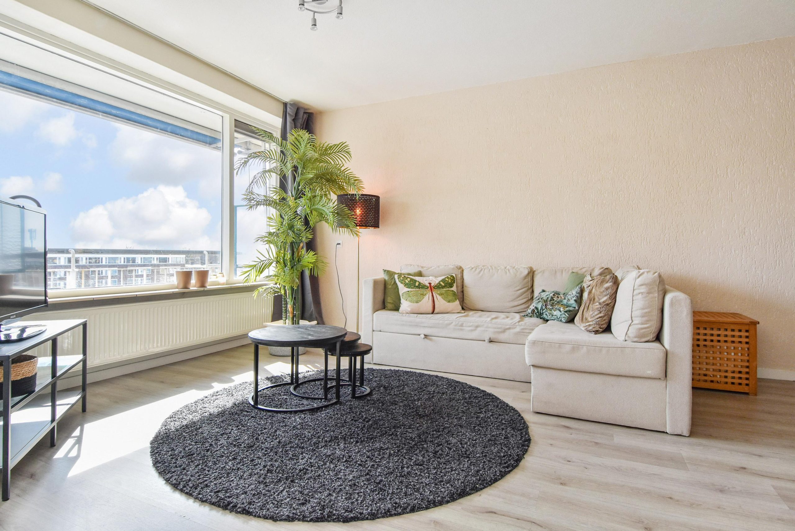 KEURIG 4-KAMER APPARTEMENT ( CA. 92 M2 WOONOPPERVLAK!) GELEGEN OP DE 4E VERDIEPING MET ZONNIG BALKON EN VRIJ UITZICHT OVER DE ‘JULIANABAAN’.